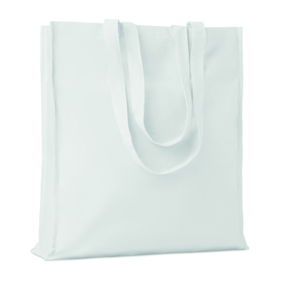 Shopping Tasche mit langen Tragegriffen und seitlicher Falz. Baumwolle 140g/m².