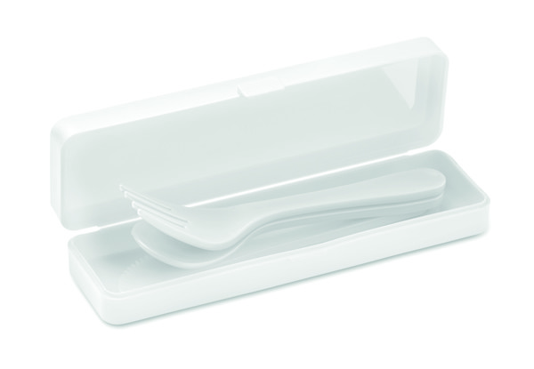 Wiederverwendbares Besteck-Set mit Messer, Gabel, Löffel im passenden Etui.