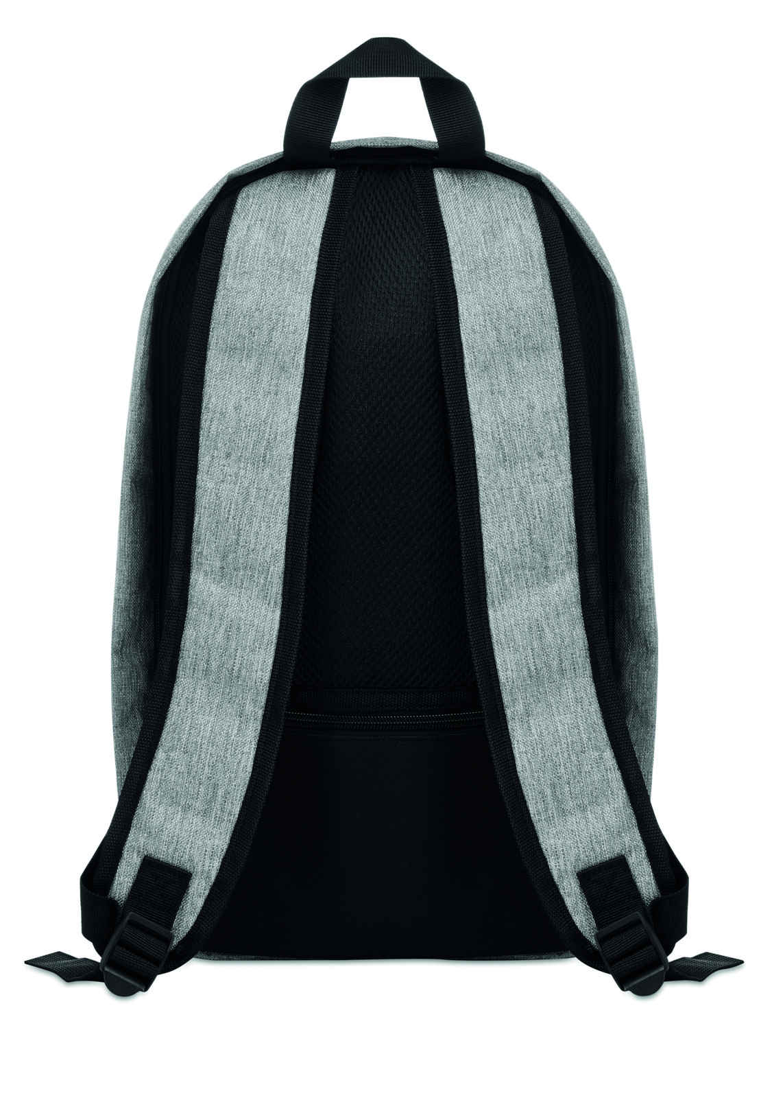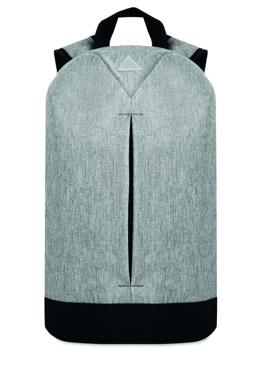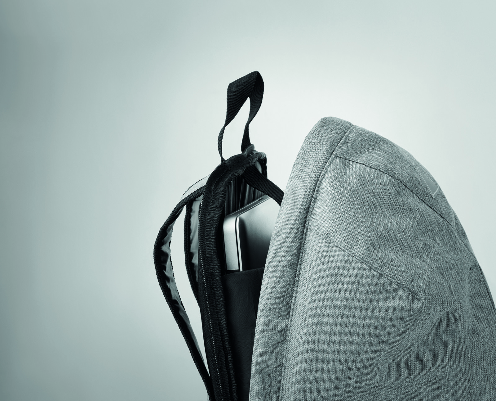 Diebstahlsicherer Rucksack mit kleiner Reißverschlussaußentasche. 600D Polyester.