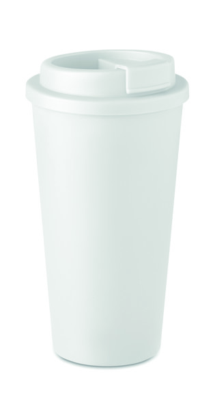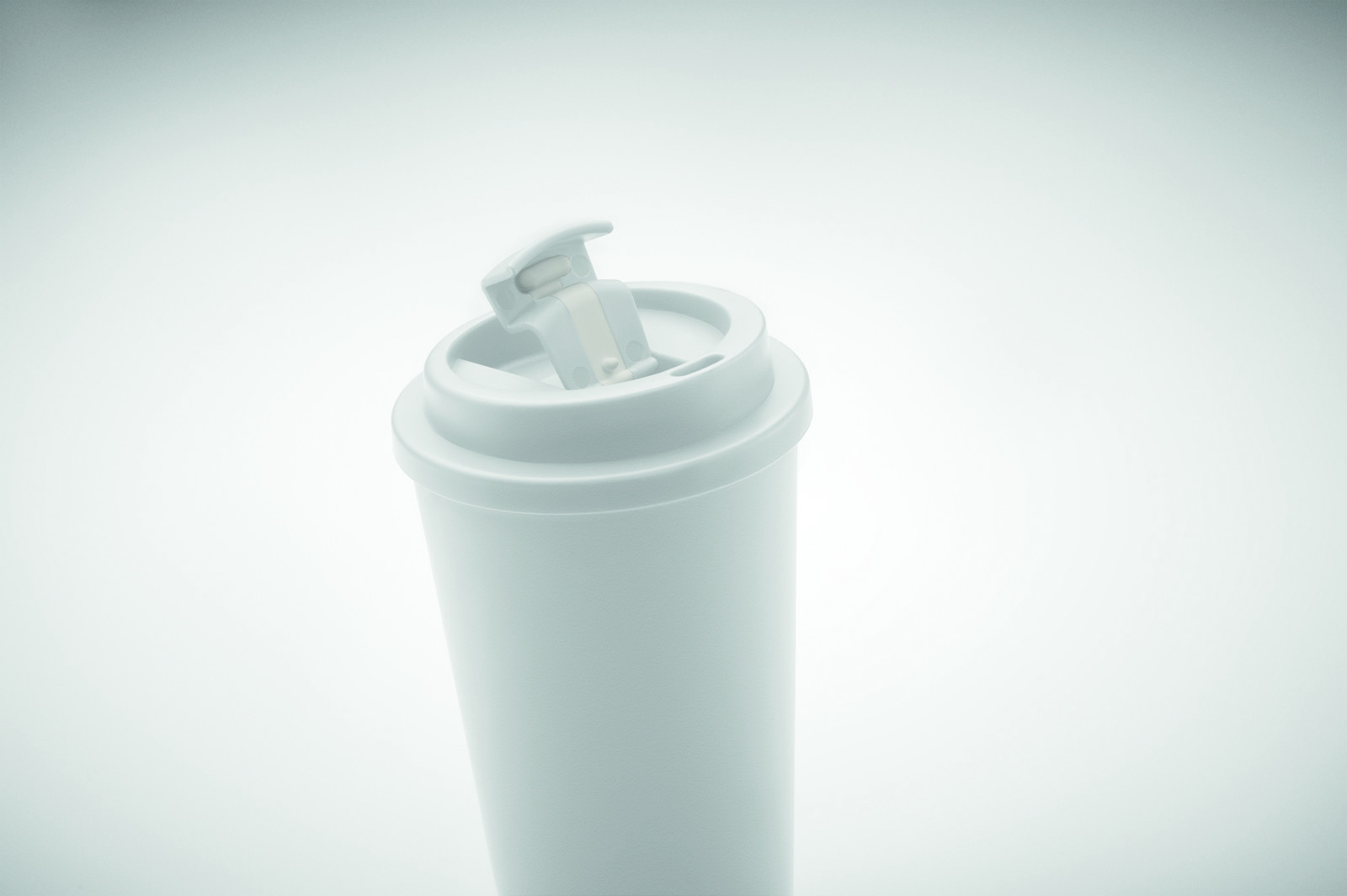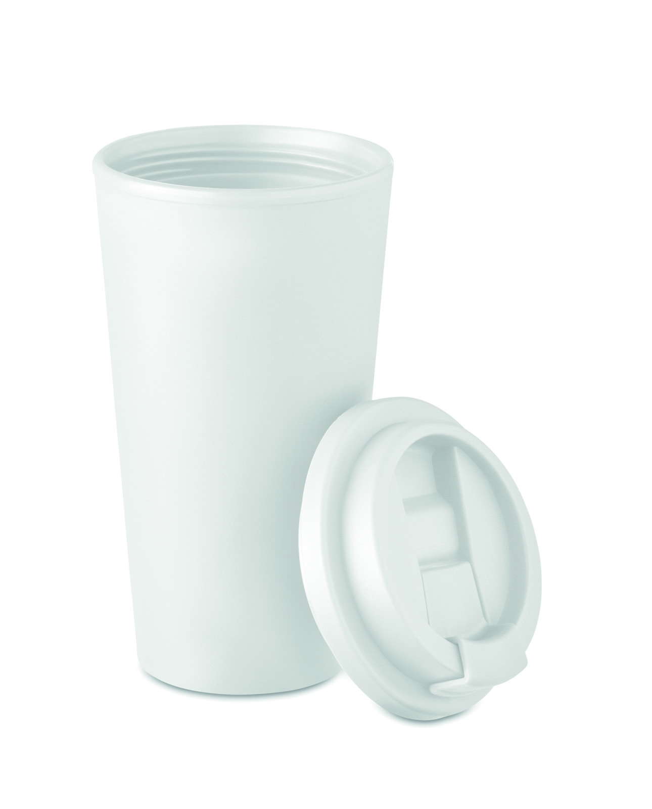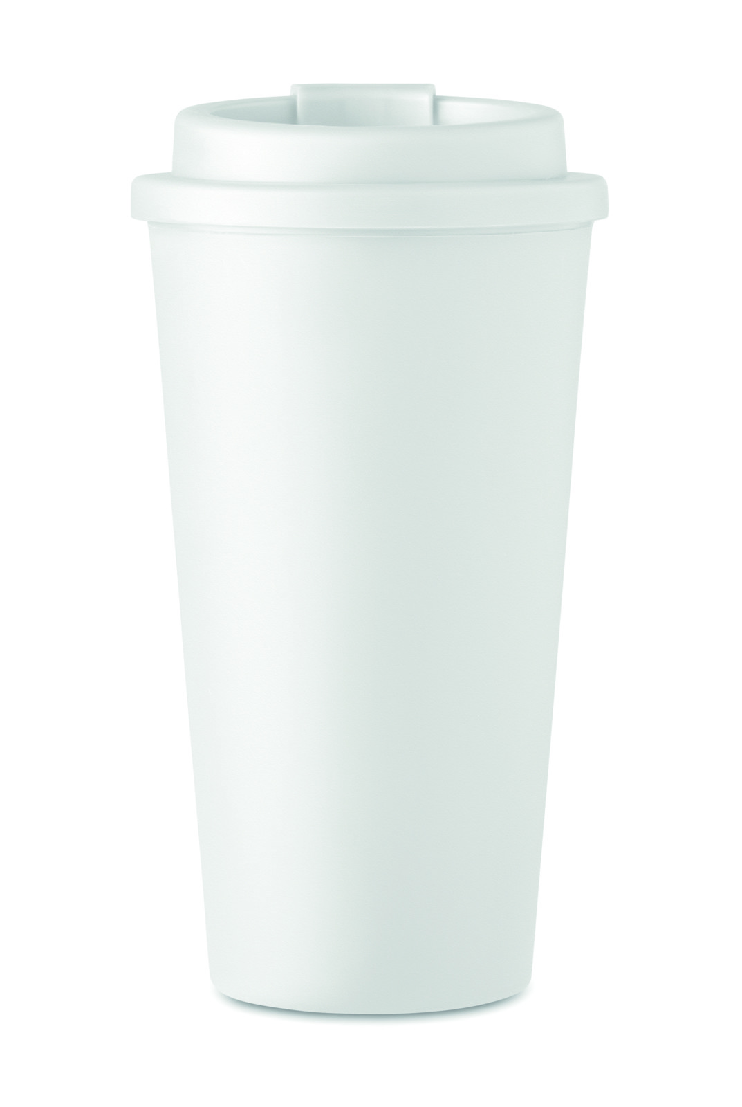 Doppelwandiger Becher aus PP. Füllmenge: 450 ml.