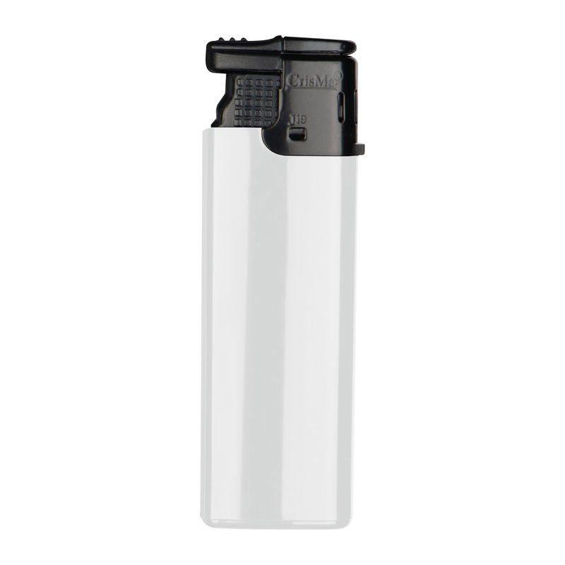 Elektronik-Feuerzeug mit schwarzem Kopf, nachfüllbar. Die Sturmflamme lässt sich stufenlos verstellen. Ihr Werbeaufdruck erfolgt auf einer Seite.