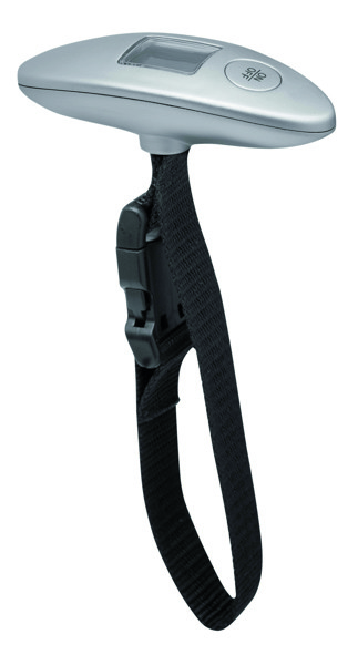 Handgepäckwaage. Maximale Kapazität: 40 kg. 1 Knopfzelle im Lieferumfang enthalten. Einzeln verpackt in silbernem Karton. ABS.