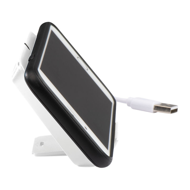 Induktionsladegerät aus Kunststoff inkl. USB-Ladekabel. Laden Sie Ihr Smartphone einfach ohne Kabelverbindung auf. Der Wireless Charger dient gleichzeitig auch als Ständer für Ihr Smartphone. Ihre Werbung drucken wir vorne mittig auf das Induktionsladegerät.