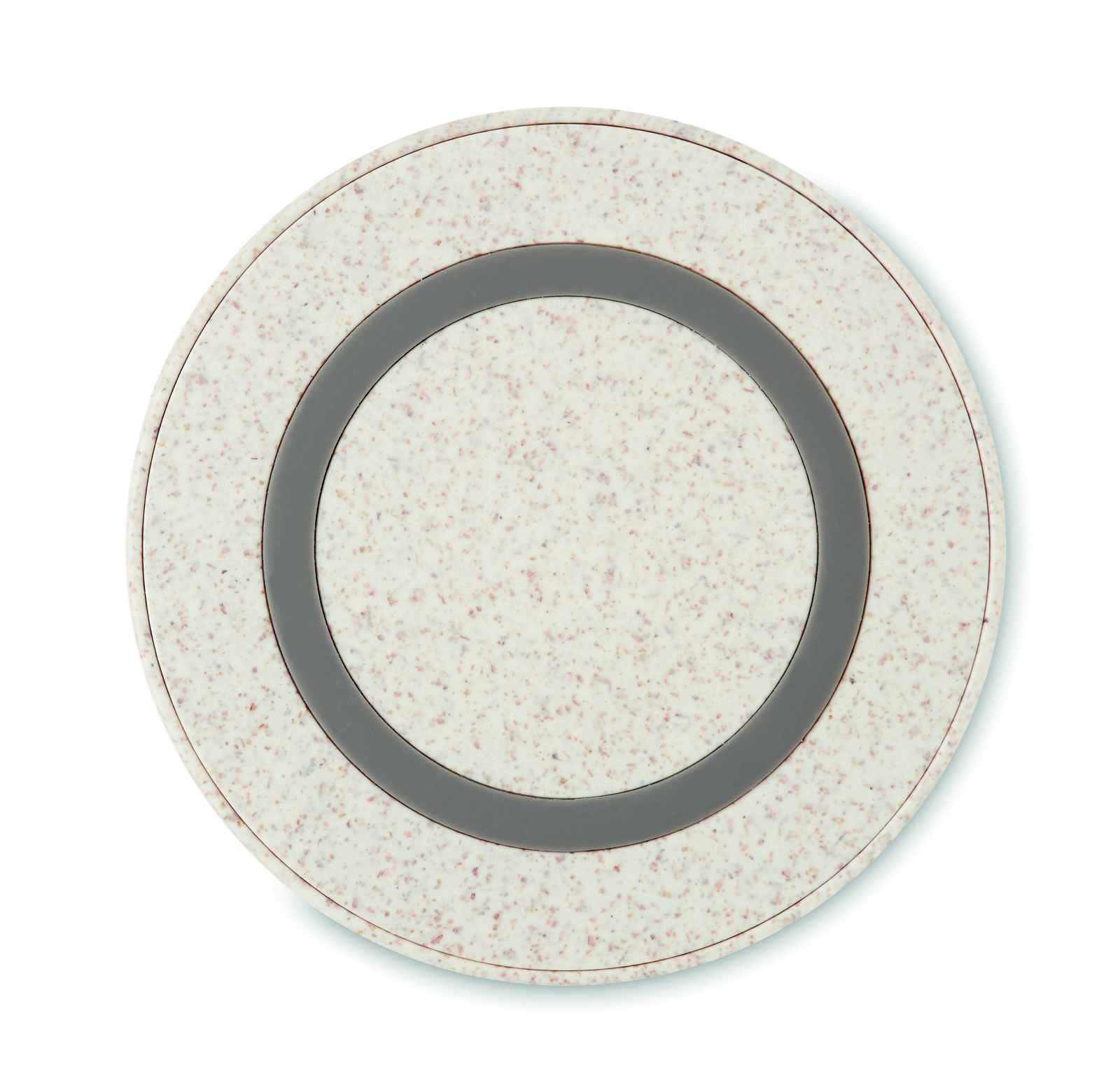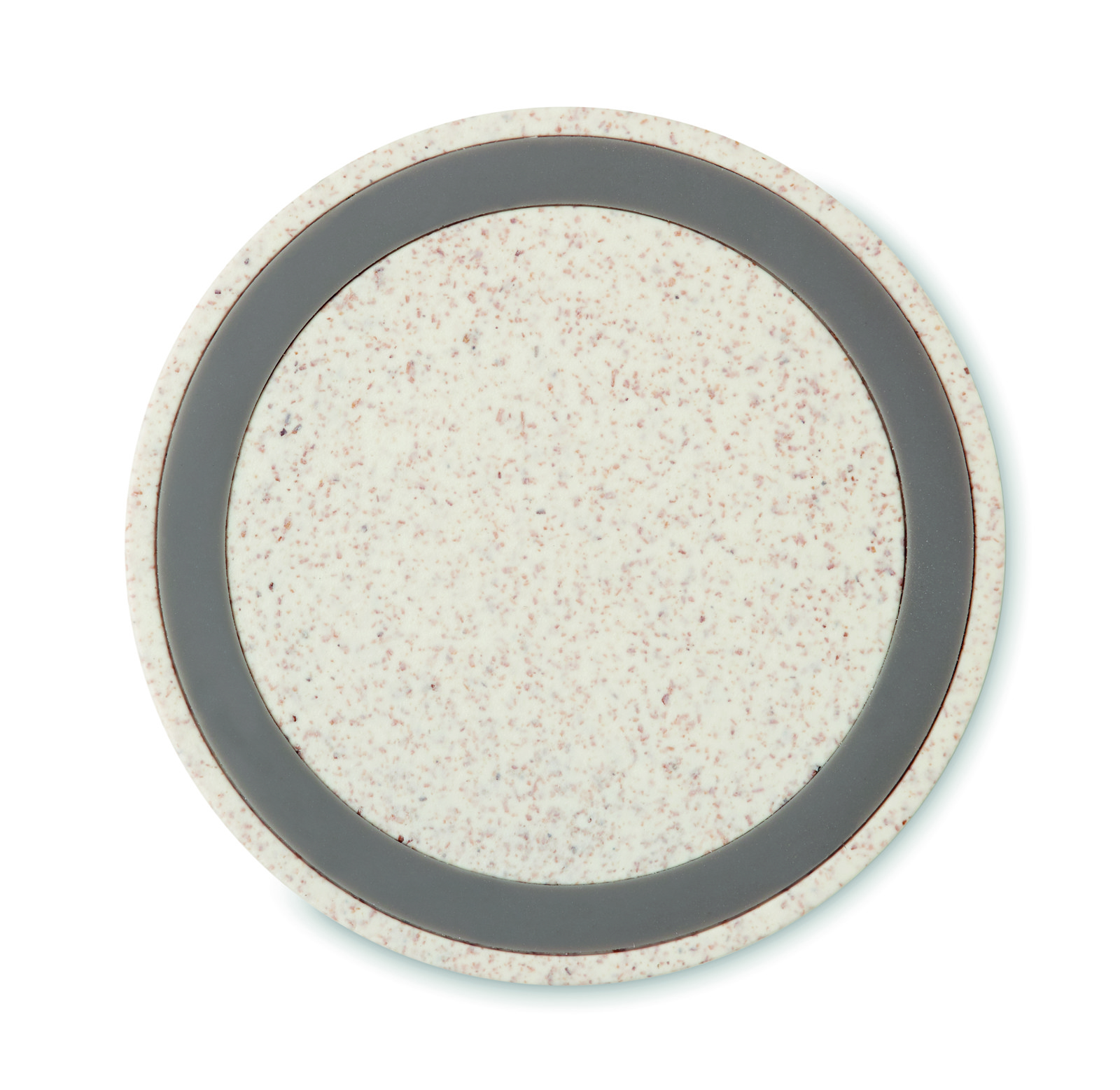 Induktives Ladepad aus Weizenstroh (35%) und ABS (65%). Verbinden Sie das Gerät mit dem Computer und laden Sie Ihr Smartphone durch einfaches Auflegen auf. Ausgang: DC5V/1A (5W). Kompatibel mit den neuesten Android Smartphones, iPhone® 8, 8S und X und höher.