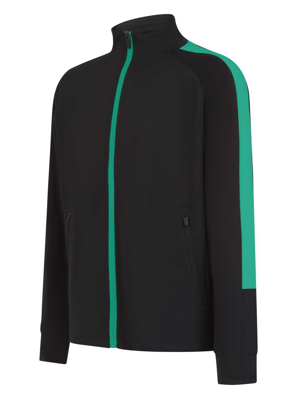 100% Polyester Interlock Contrast colour panels on outer sleeve Contrast colour centre front zip Zipped side pockets Funnel neck 1x1 ribbed cuffs Semi-automatic lock zip sliders on all zips