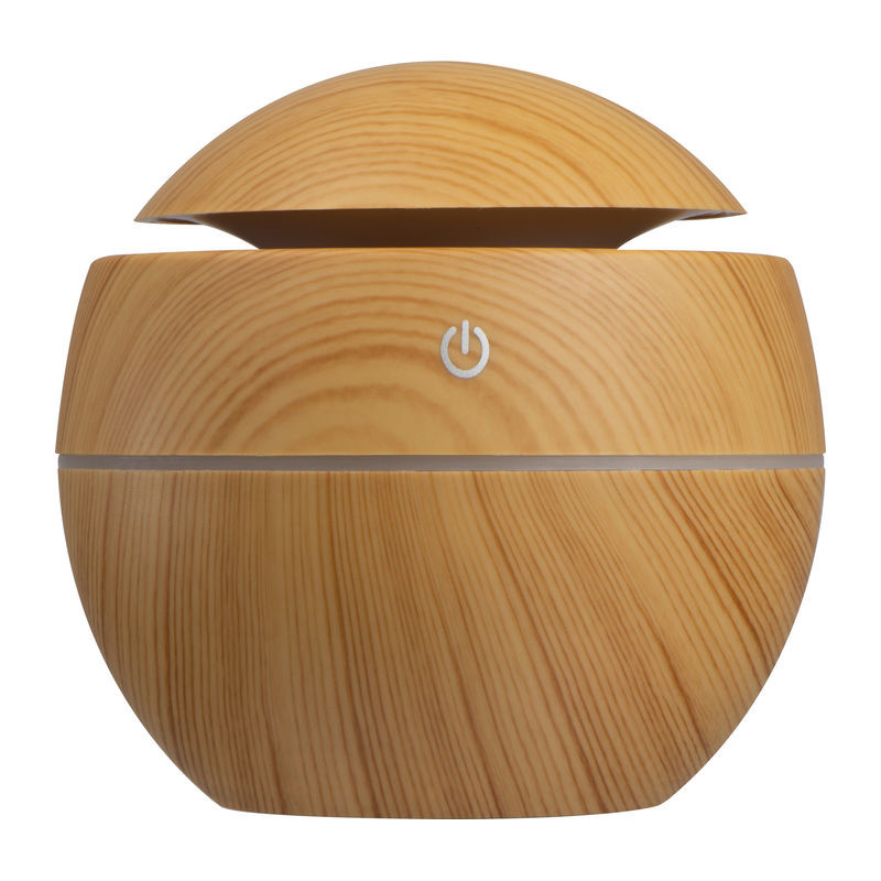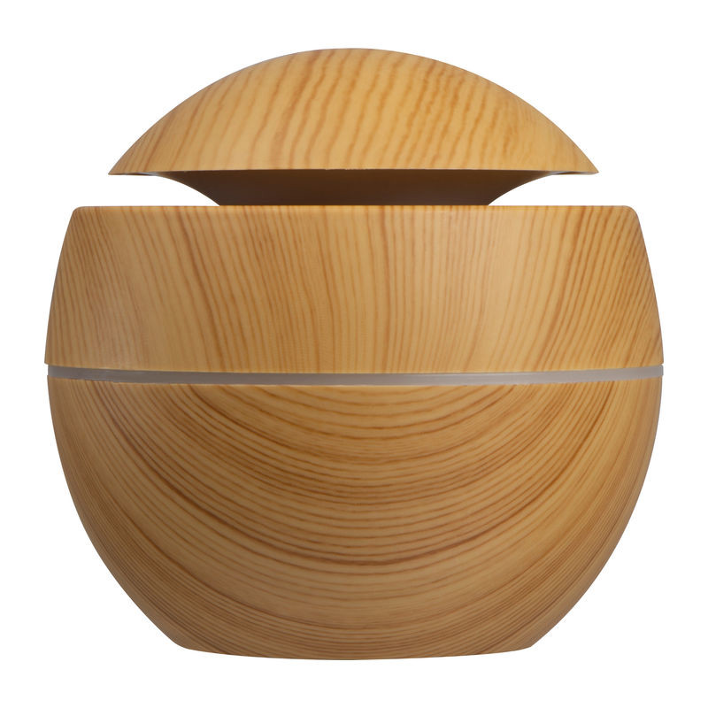 Aroma Luftbefeuchter mit farbwechselndem LED-Licht aus Kunststoff in Holzoptik. Der Luftbefeuchter hat ein Fassungsvolumen von ca. 130 ml und lässt sich mit ätherischen Ölen anreichern. Betrieben wird der Luftbefeuchter mit dem beiliegendem USB-Kabel. Ihre Werbung drucken wir auf den Luftbefeuchter.