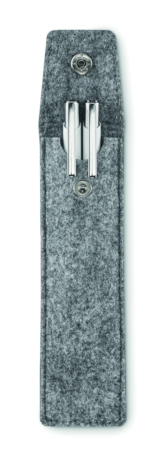 Stifte-Etui aus RPET-Filz mit Platz für 2 Stifte. Druckknopfverschluss.