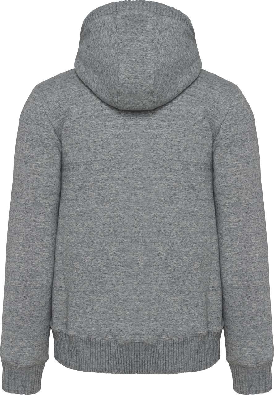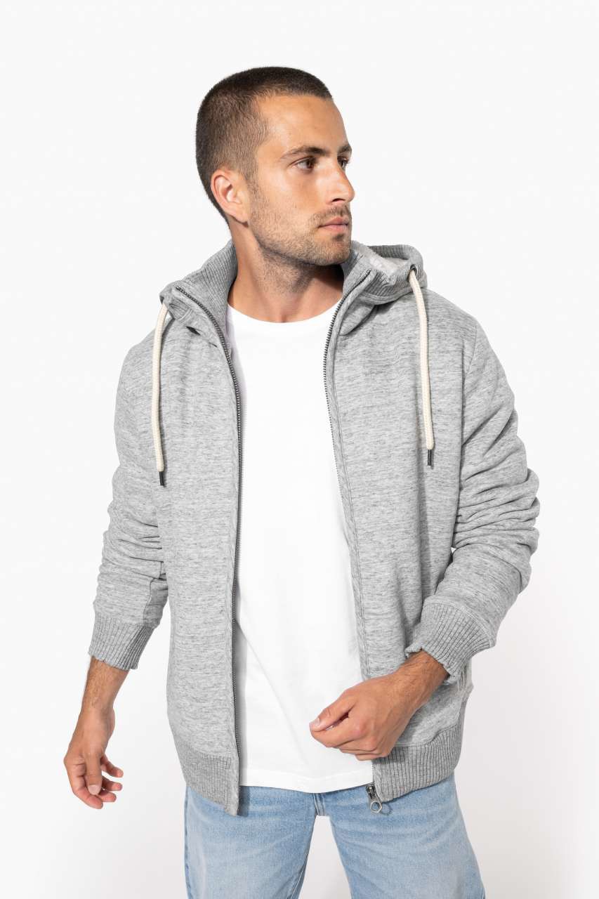80% cotton / 20% polyester 100% Polyester fully sherpa-lined 2 piped front pockets Metal zip fastening 4x4 ribbed neck, hood edge, cuffs and hem 2 invisible zippers on left chest and left seam for decoration access This product has been specially treated and appears intentionally aged This manufacturing process results in colour variations between products and makes each piece unique No brand label at neck, only size tag for easy relabelling Certified STANDARD 100 by OEKO-TEX®N° CQ1007/7, IFTH