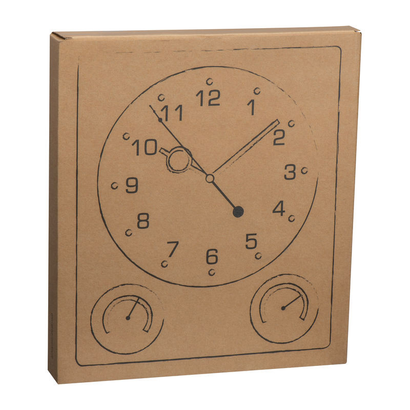 Wanduhr mit dezent weißem Ziffernblatt und matt silberner Oberfläche. Zeit, Luftfeuchtigkeit und Temperatur werden angezeigt. Für Ihre Werbung ist ausreichend Platz zwischen Hygro- und Thermometer. Exklusive einer AA Batterie (Bestellen Sie diese gleich mit, siehe letzte Seite bzw. Artikel 999300).