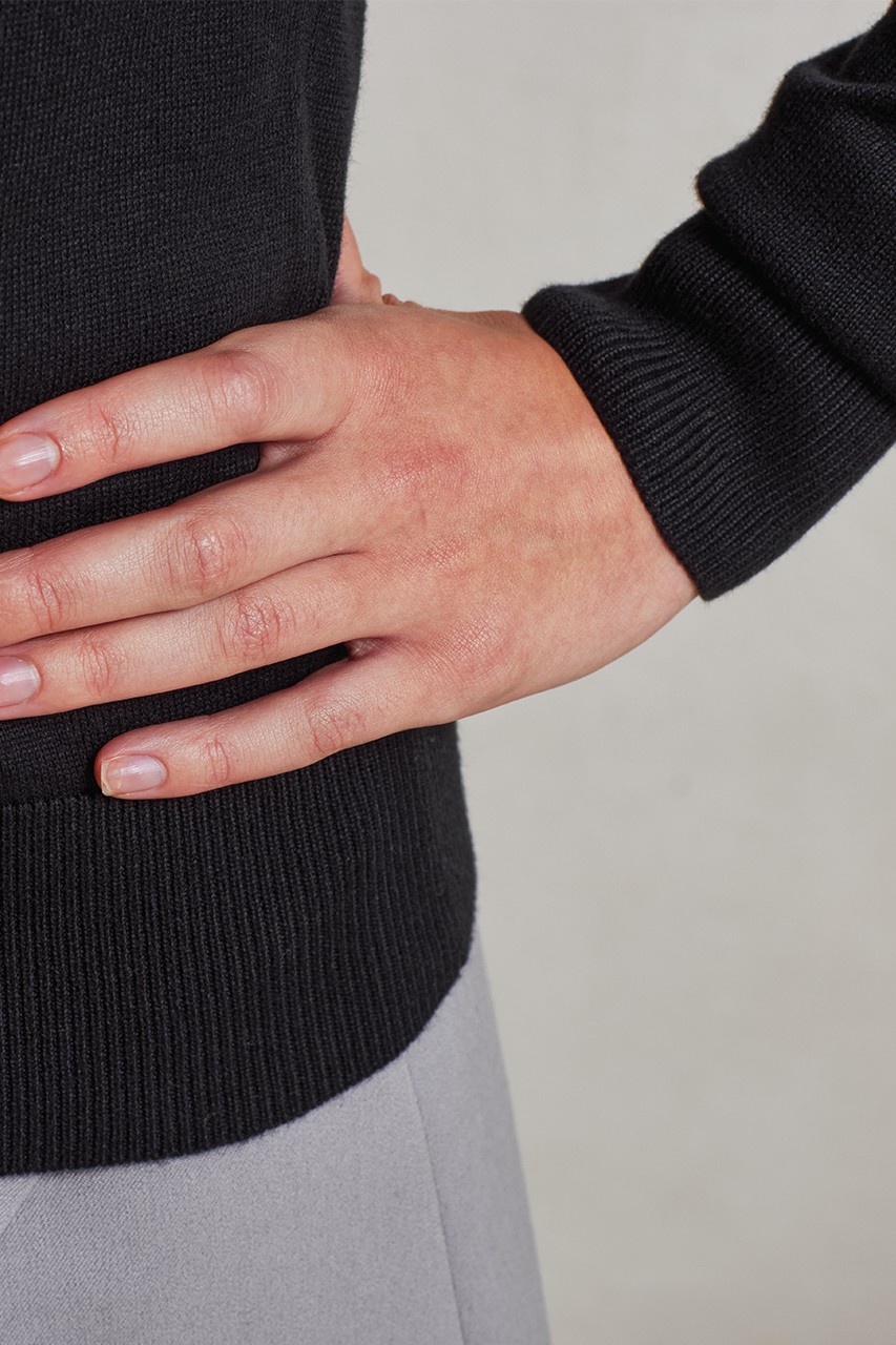 Material 55% Baumwolle 45% Akryl 12 gg Strickartikel Merkmale V-Ausschnitt-Modell Feinstrick-Artikel Rippstrick-Ärmelbündchen und -Saum Pflegeleicht