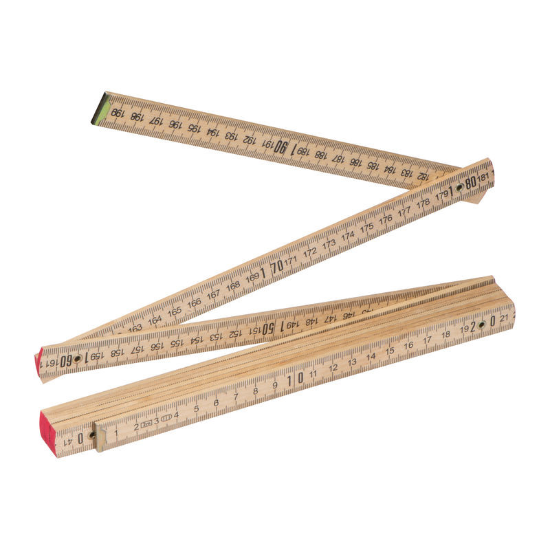 Ausklappbarer Zollstock aus Holz mit einem Messbereich bis zu 2 Meter. Ihre Werbung wird auf den Zollstock gedruckt.