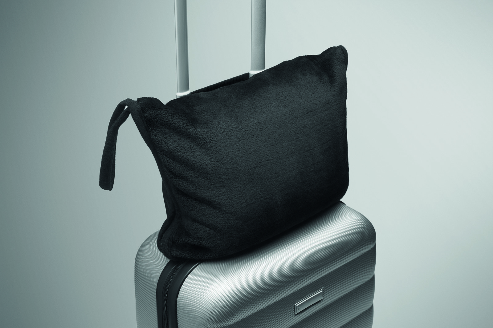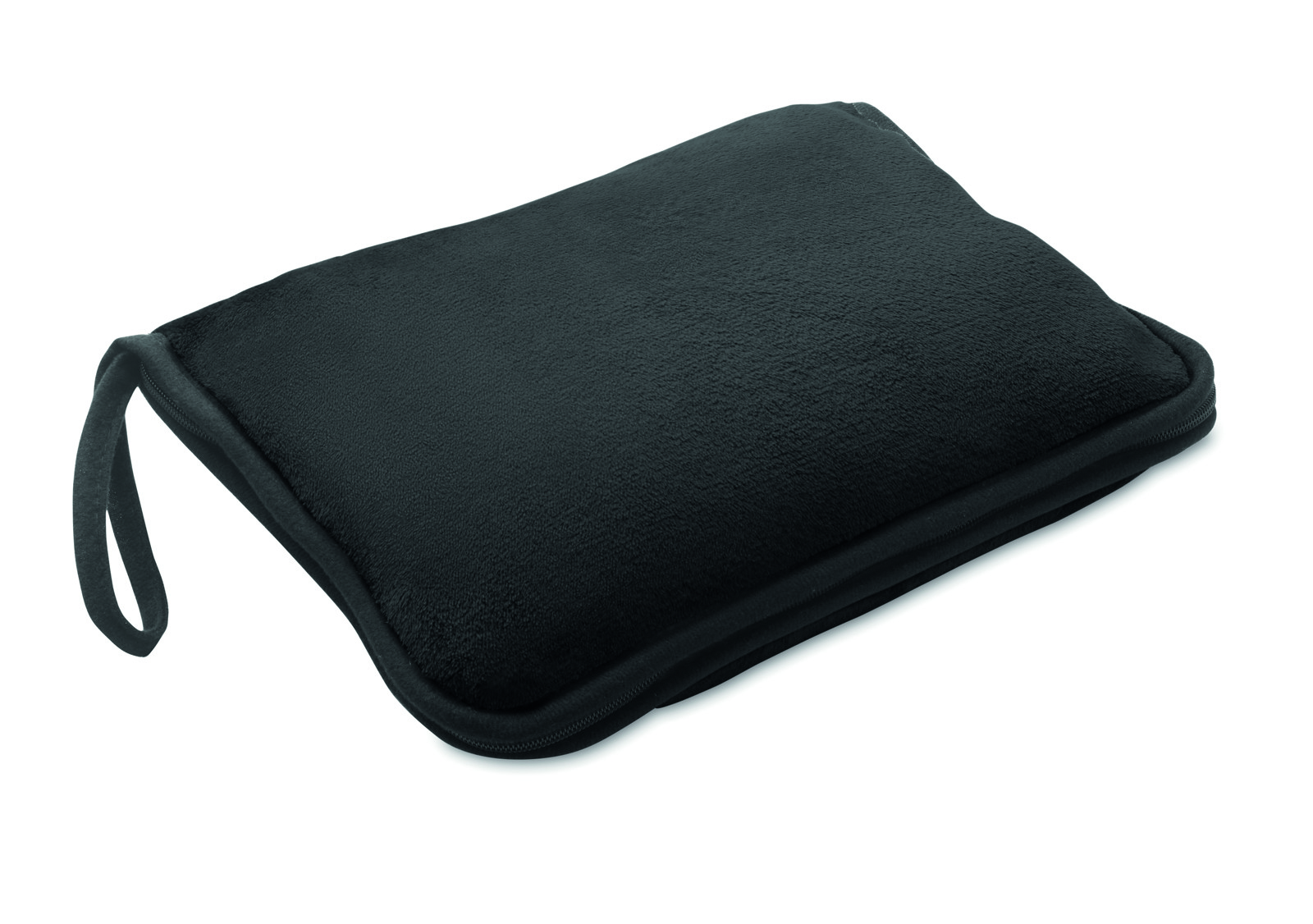 2 in 1 travel flannel blanket and/or pillow set in 220 gr/m². The item can be folded. Including a 600D RPET polyester shoulder strap and handle.