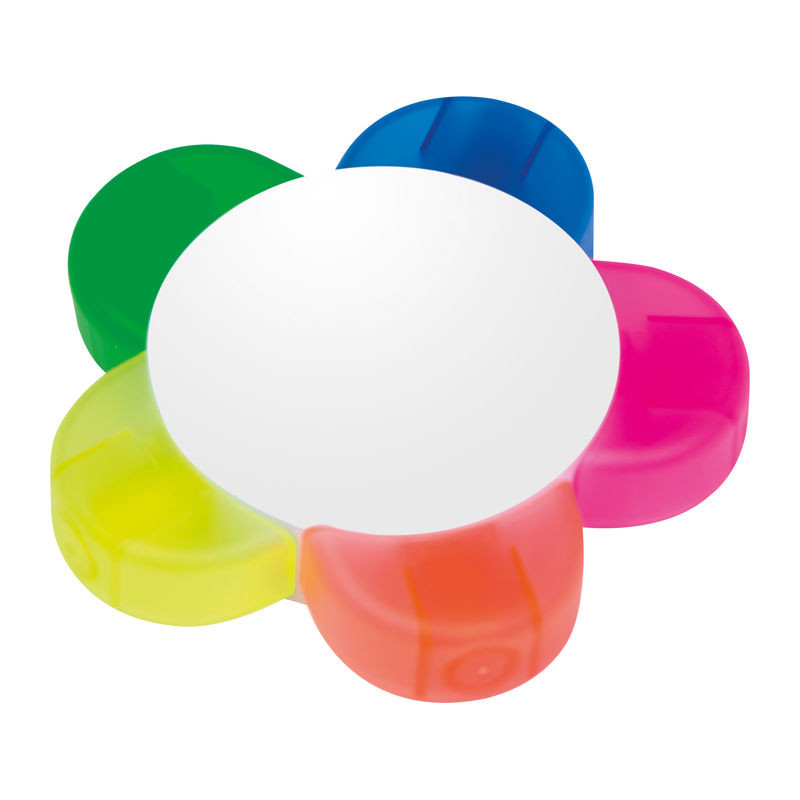 Plastic highlighter featuring five distinct colours for versatile marking.