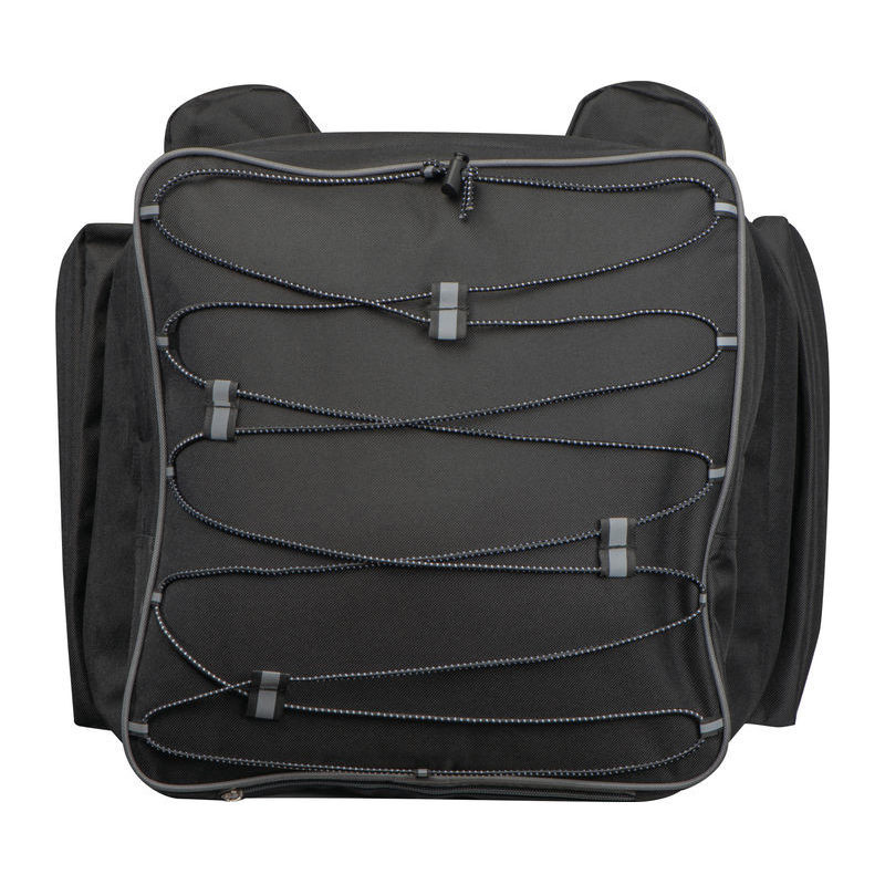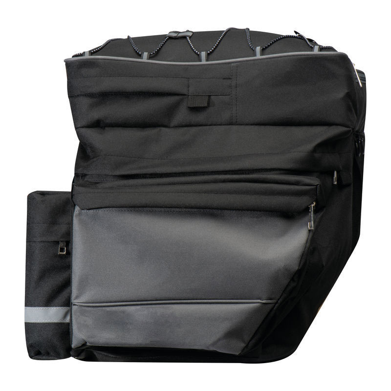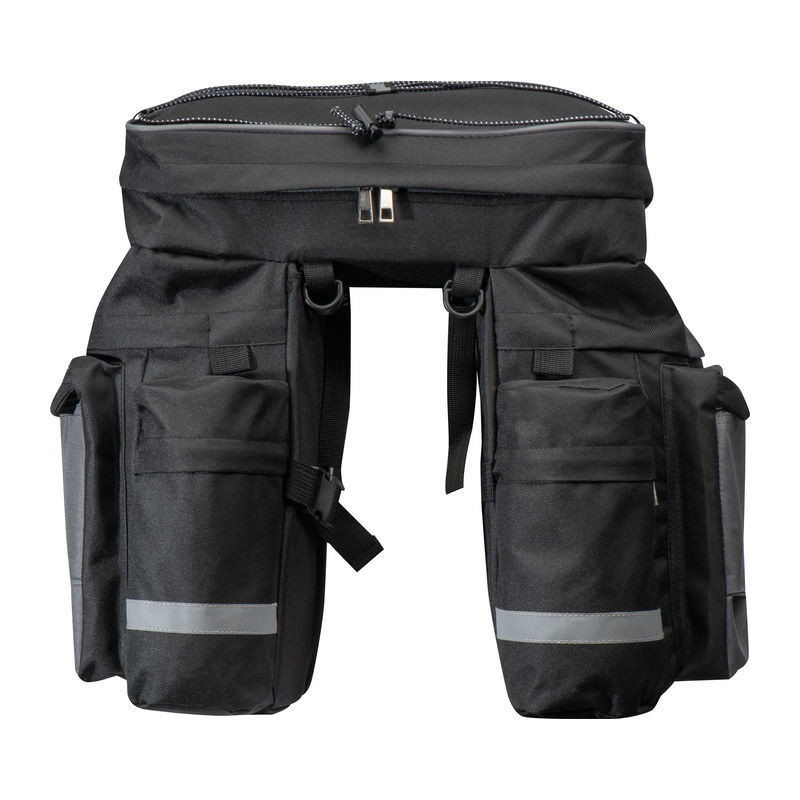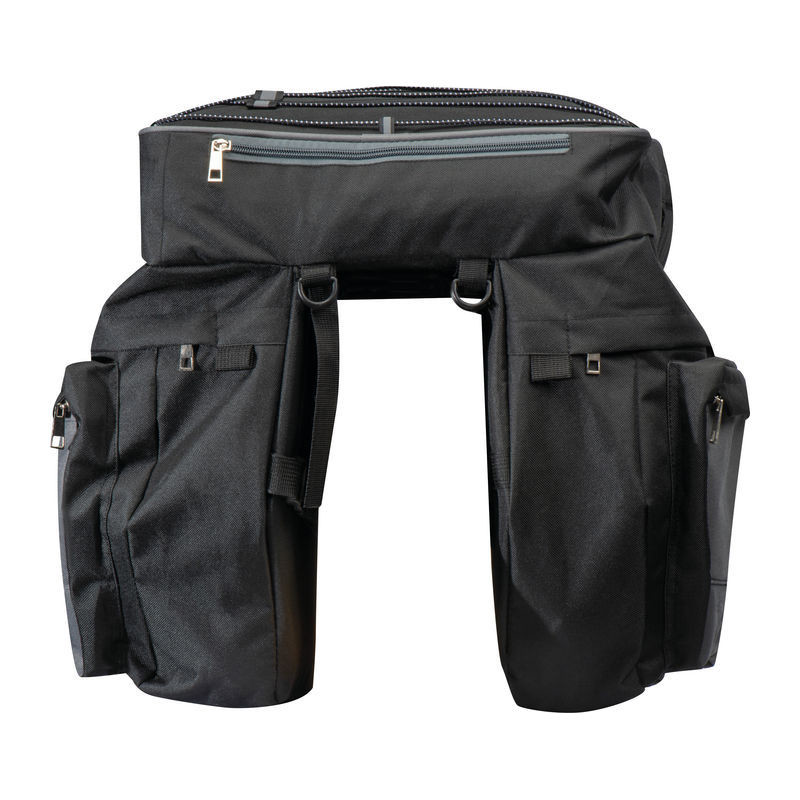 High-quality, spacious bicycle saddle bag designed to attach securely to the luggage rack. Features multiple compartments and elastic straps for organised and convenient storage.