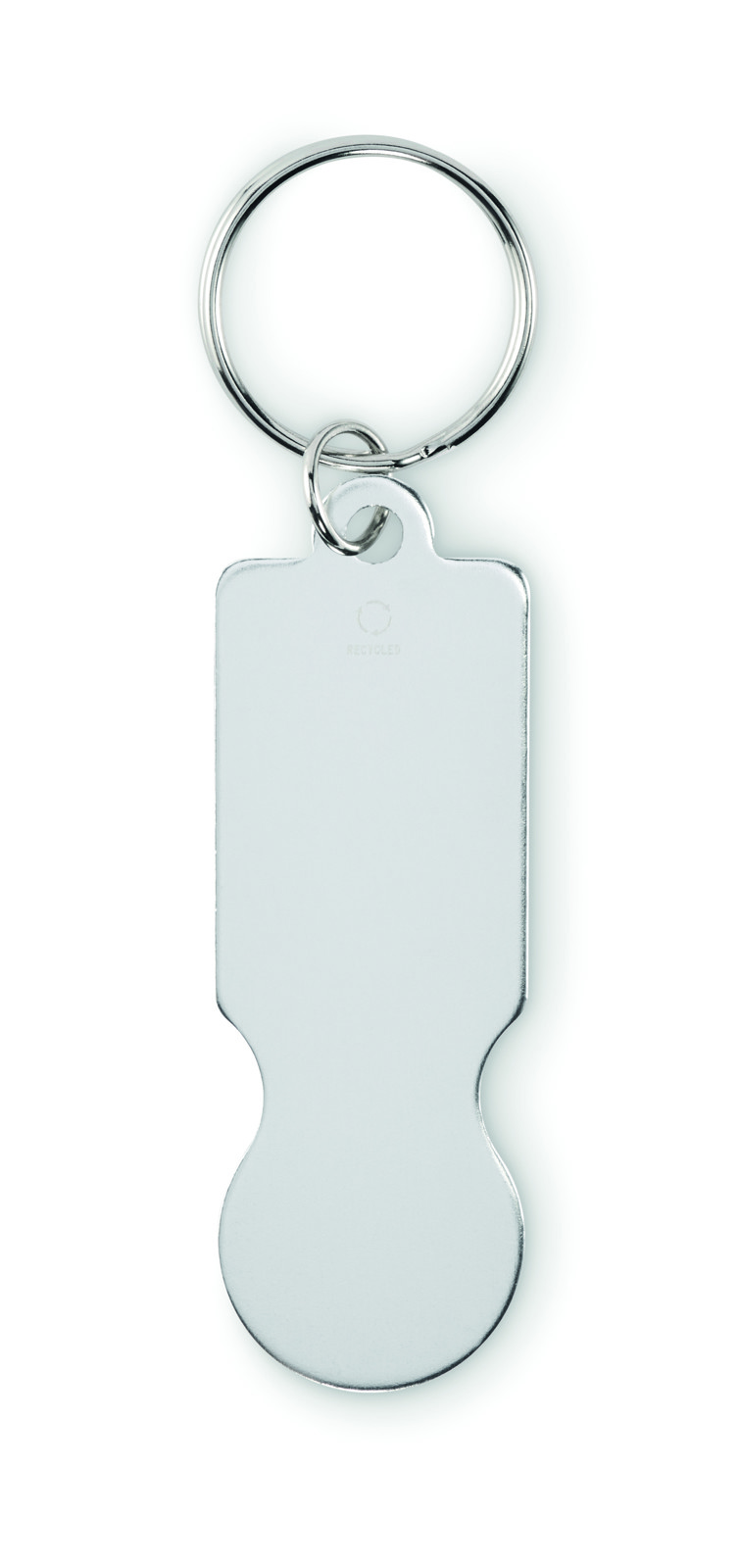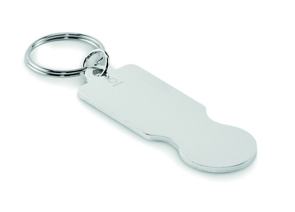 Trolley token with key ring in recycled aluminium.
