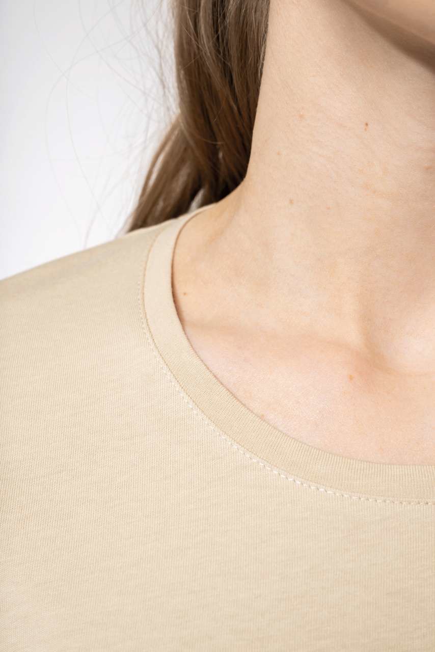 100% enzyme-washed combed cotton (Oxford Grey: 90% cotton /10% viscose) Fitted style Neck tape Oxford Grey contrast neck tape for all colours, except for White body where neck tape is White and Oxford Grey body where neck tape is Dark Grey Twin needle finishing at the cuffs and hem Certified STANDARD 100 by OEKO-TEX®N° CQ1007/7, IFTH