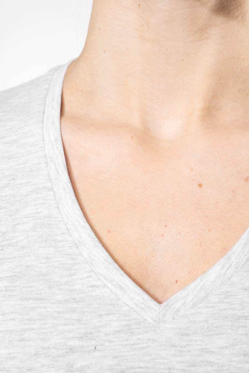 100% enzyme-washed combed cotton (Oxford Grey: 90% cotton /10% viscose) Fitted style Neck tape (Oxford Grey contrast neck tape for all colours, except for White body where neck tape is White and Oxford Grey body where neck tape is Dark Grey) Twin needle finishing at the cuffs and hem Certified STANDARD 100 by OEKO-TEX®N° CQ1007/7, IFTH