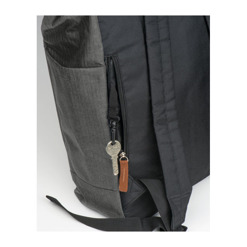 Rolltop backpack crafted from 500D polyester featuring a foldable or rollable closure, padded shoulder straps, a carrying handle, and a lockable front compartment.