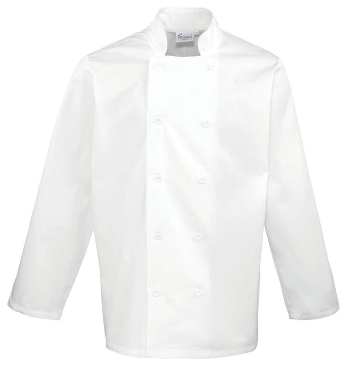 Fabric 65% Polyester, 35% Cotton Twill 195gsm Features Ten buttonhole wrap over fastening Pen pocket on the left sleeve Mandarin collar High quality, long life resin buttons Easy care