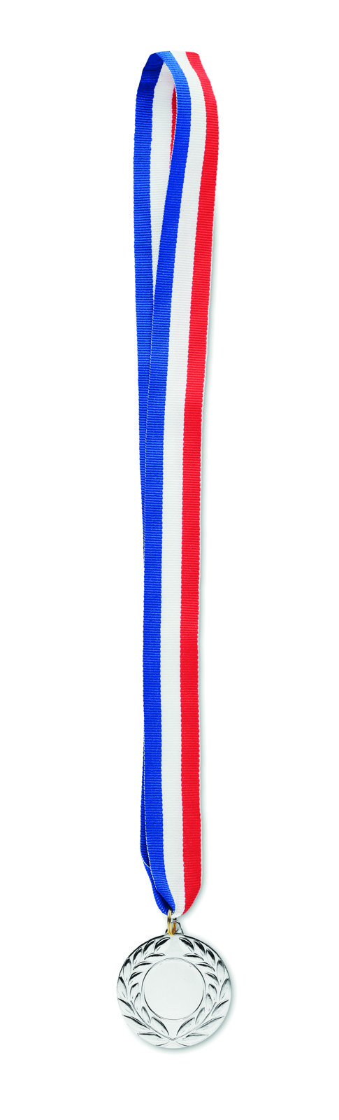 Medal made of iron with polyester strap in blue, white and red colours. 5 cm diameter