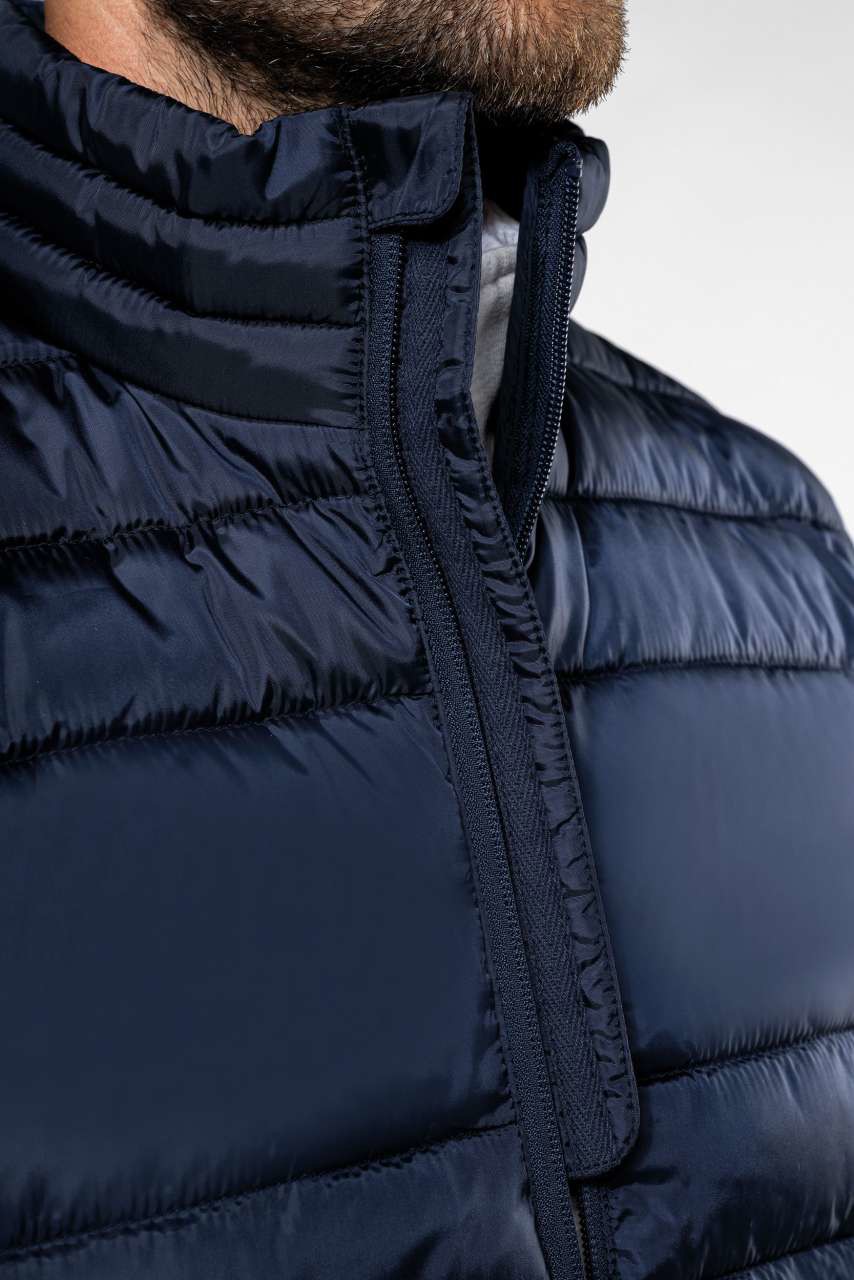 Transferring to IB6172 100% polyester mat 290T 100% polyester inner padding Straight fit Folds up into storage bag 2 zipped side pockets with nylon zip and tone-on-tone zip puller 2 inner storage pockets Tone-on-tone nylon front zip fastening with zip puller Horizontal padding for body and sides Larger customisation area on chest and back Elasticated bias finish on the armholes and hem Hanging loop inside neck Detachable brand label