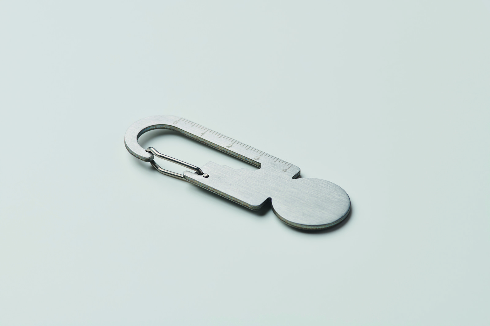 Trolley token with key ring in recycled stainless steel with multi-function tool including bottle opener, ruler and hex driver wrench (M1/M2/M3/M4).
