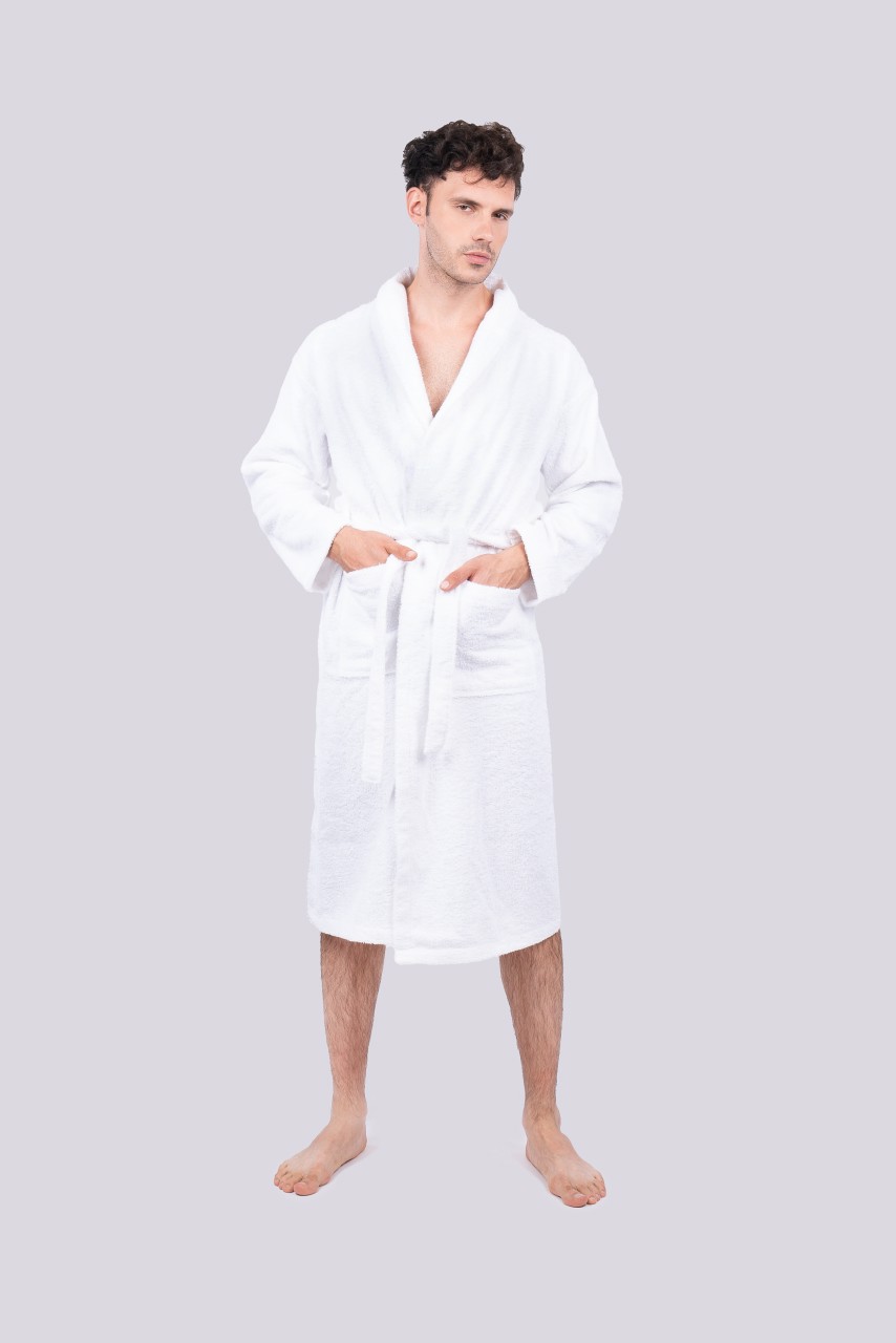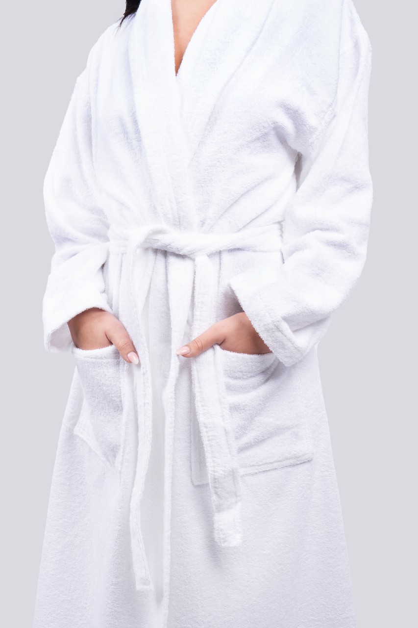 100% ring spun cotton Shawl collar for extra comfort Soft and highly absorbant Waistband with belt loops Hanging loop at neck Avoid using fabric softener because it reduces towels’ water absorbency No harmful substances! Certified according to STANDARD 100 by OEKO-TEX®