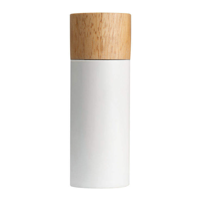Salt and pepper mill in coated stainless steel, with bamboo lid, and ceramic grinders. Your logo will be engraved on the lid.