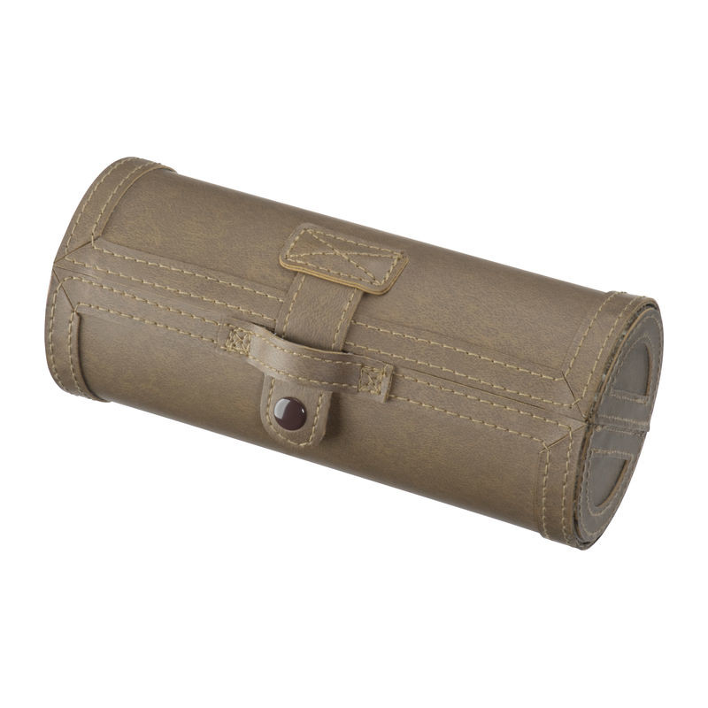 This elegant brown and discreet shoe polish roll, crafted from artificial leather, includes a transparent shoe polish, a small transparent sponge for swift shoe cleaning, a shoe brush, a polishing cloth, a polish application cloth, and a shoehorn.