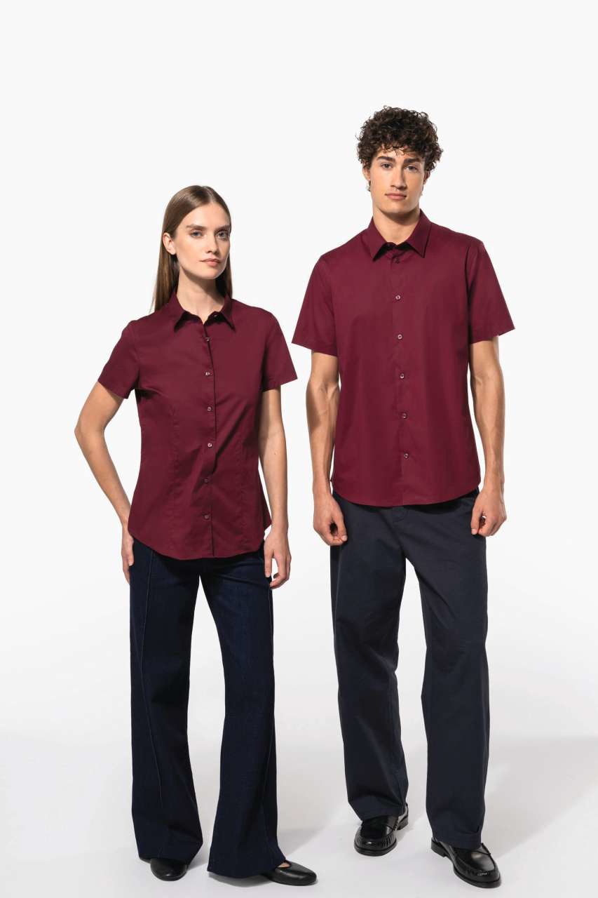 97% cotton/3% elastane Elastane for fitted style and extra comfort Cut-away boned collar Matching buttons Double back yoke and darts Felled seams 1 spare button Shaped hem Certified STANDARD 100 by OEKO-TEX® N° CQ 1007/8, IFTH