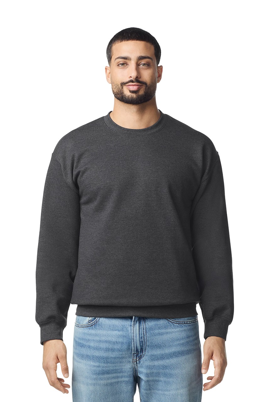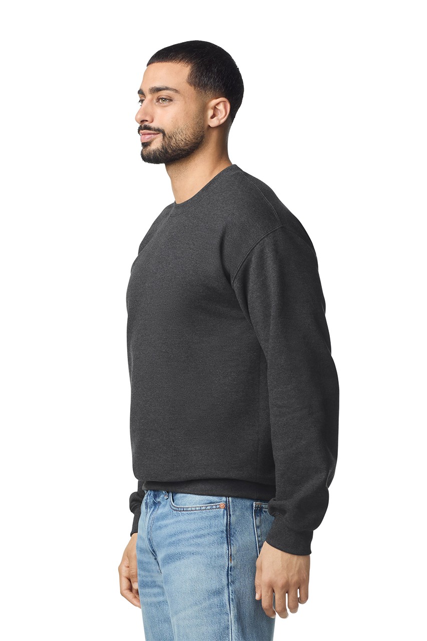 80% Ring Spun Cotton, 20% Polyester, 285.0 G/SqM (White 275.0 G/SqM) Softstyle Midweight Fleece features a cozy, brushed interior and a 100% ring spun cotton face, ideal for a variety of cotton friendly decorating techniques Dropped shoulder 1x1 rib with spandex cuffs and bottom band for enhanced stretch and recovery Classic fit, seamless body High-performing black tear-away label; transitioning to recycled material