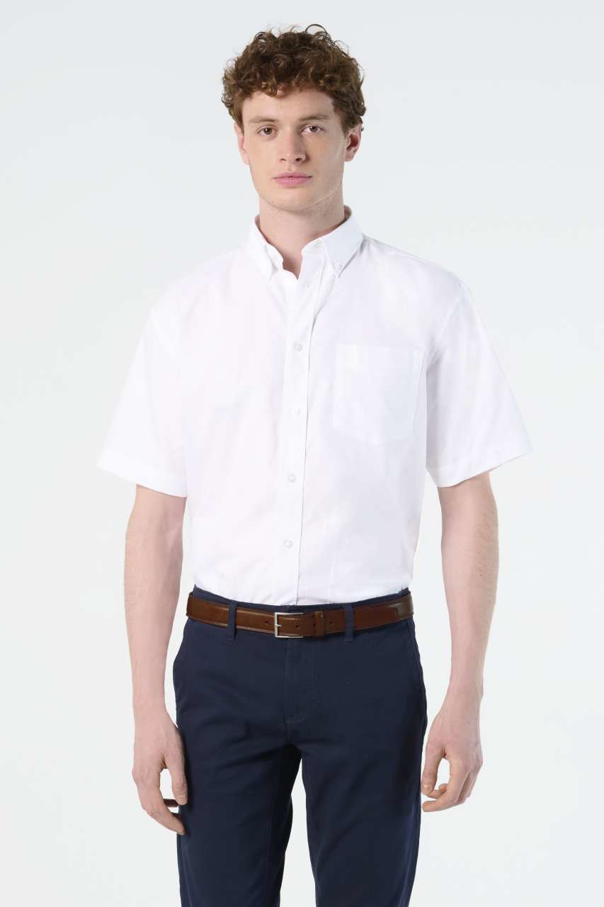 Quality 70% cotton - 30% polyester Style Straight cut Short sleeves 2 button collar 7 tone-on-tone button placket Left chest pocket 2 side pleats at back