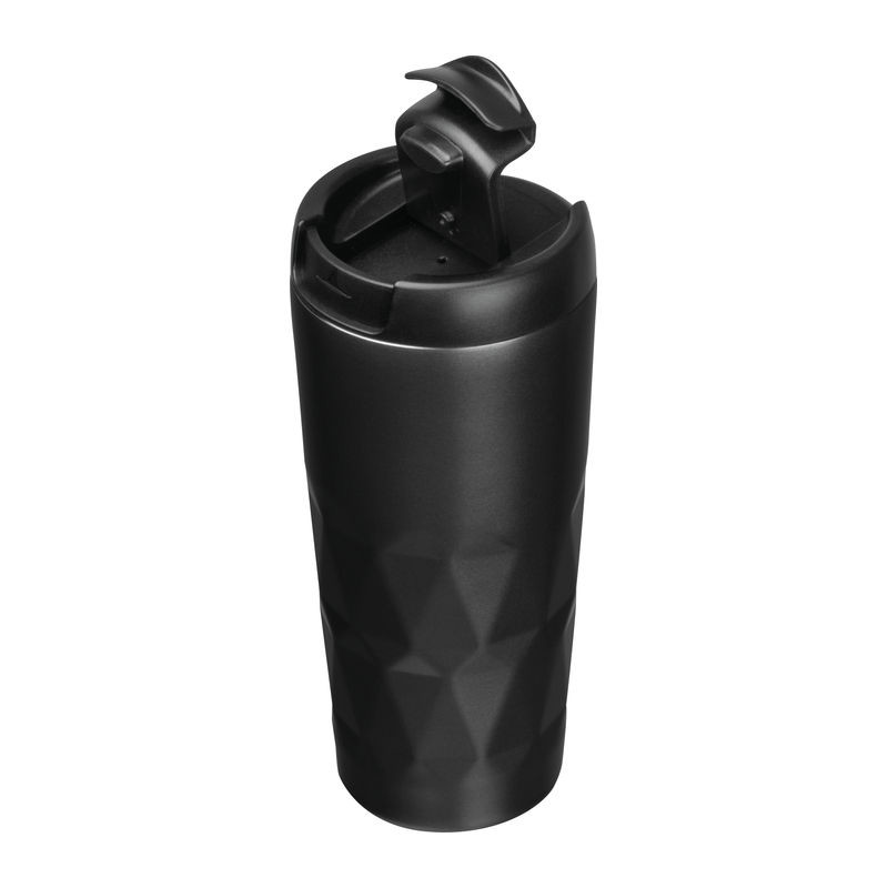 Leak-proof, double-walled vacuum insulated travel cup and tumbler with a plastic lid. Capacity: 500 ml.