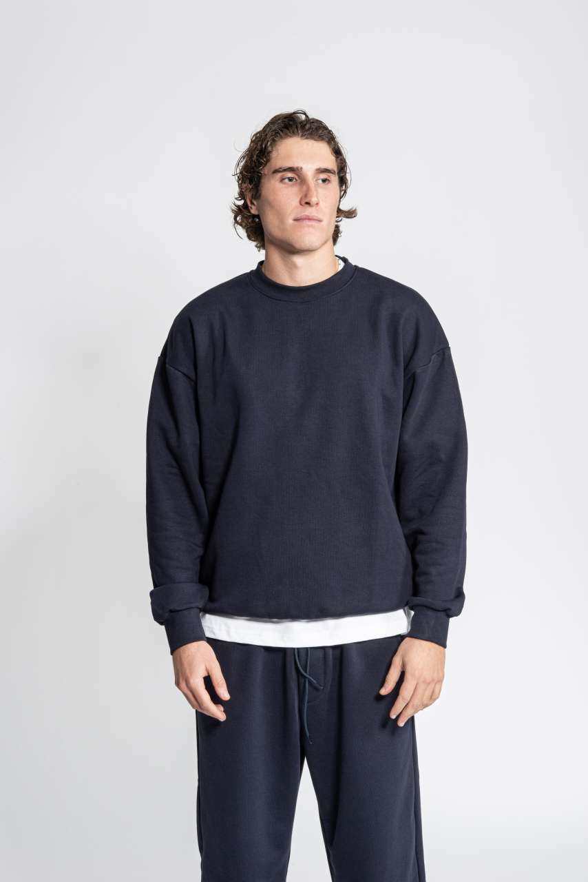 88% prstenasto predeni češljani pamuk - 12% poliester - 360 gr/m² 1x1 rebrasti ovratnik, struk i manžete Spuštena ramena Bočni šav Prekrivajući kroj Bez etikete