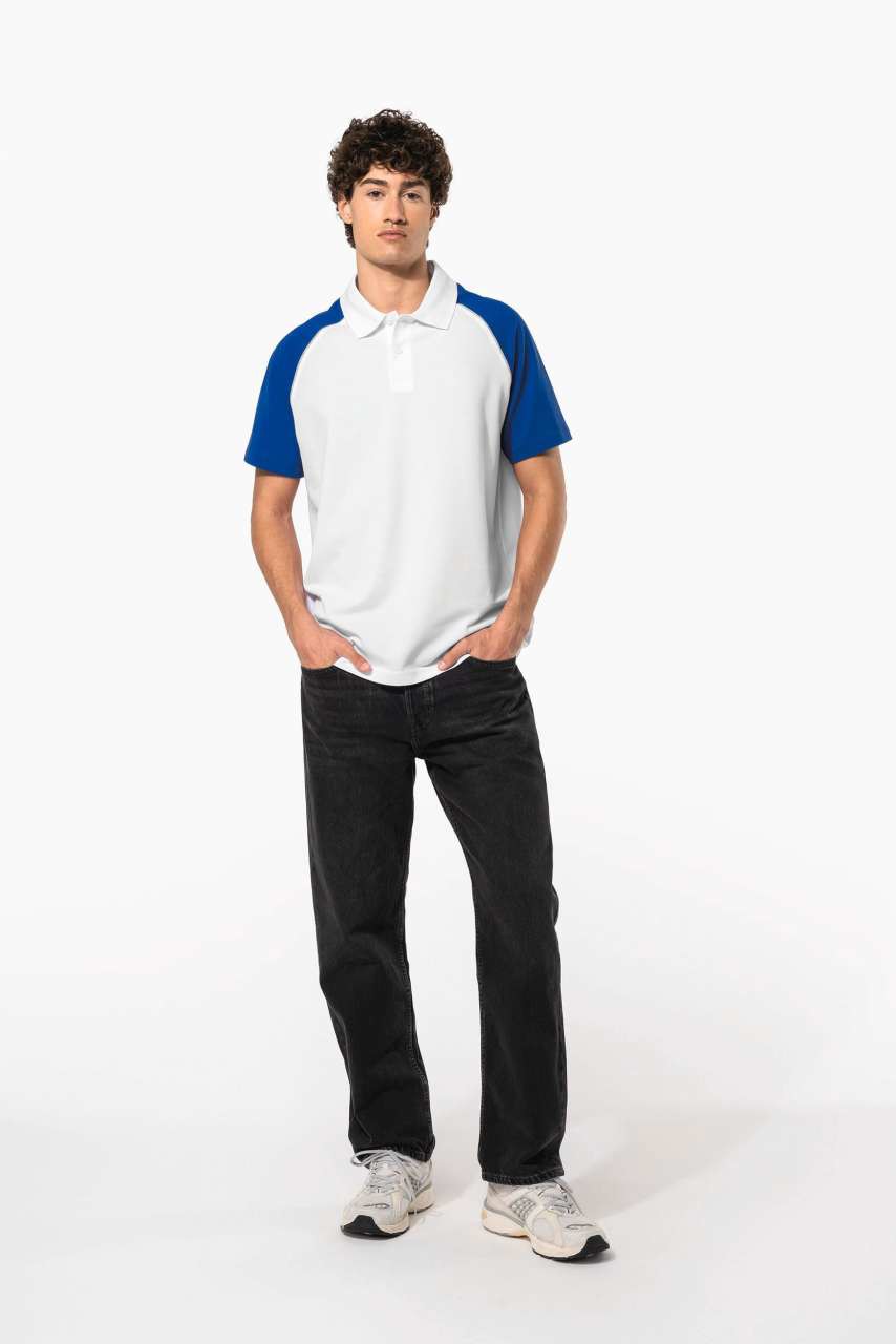 100 % pamučni piqué Rebrasti ovratnik s trakom na ovratniku Kontrastni raglan rukavi sa svijetlosivim kontrastnim velikim rubovima na otvorima rukava Prorez s 2 gumba u boji tkanine Završna obrada s dvostrukim šavovima Certificirano prema STANDARDU 100 OEKO-TEX® N° CQ 1007/7, IFTH