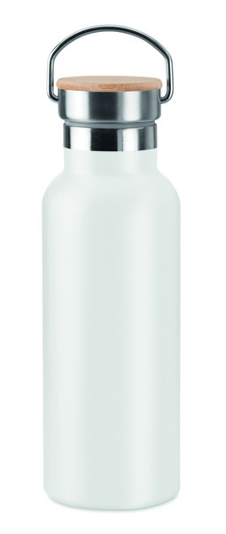 Dvoslojna termosica od nehrđajućeg čelika s poklopcem od bambusa i ručkom za nošenje. Kapacitet: 500 ml. Sublimacijski tisak dostupan je samo na bijelom artiklu. Ne propušta. Bambus je prirodni proizvod, moguće su male varijacije u boji i veličini po artiklu, što može utjecati na konačni rezultat dekoracije.