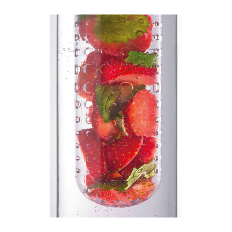 Plastična boca za piće s infuzerom za (npr.) voće i kapacitetom od 650 ml. Vaš logotip ćemo otisnuti na bocu.