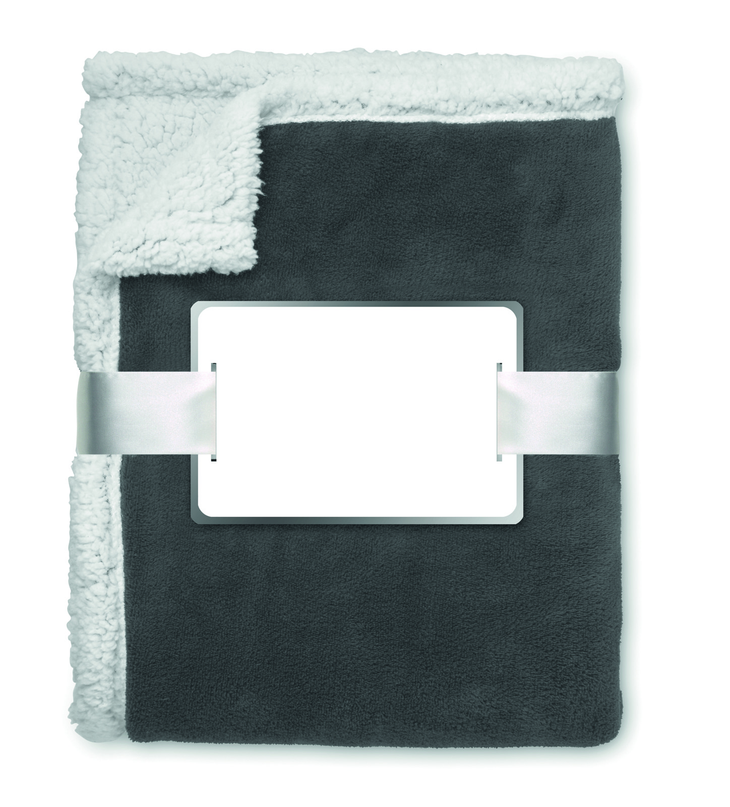 Deka od koraljnog flisa od 200 gr/m² s dvostranom podstavom od poliestera sherpa od 220 gr/m². Omotana vrpcom i kartonom za ispis.