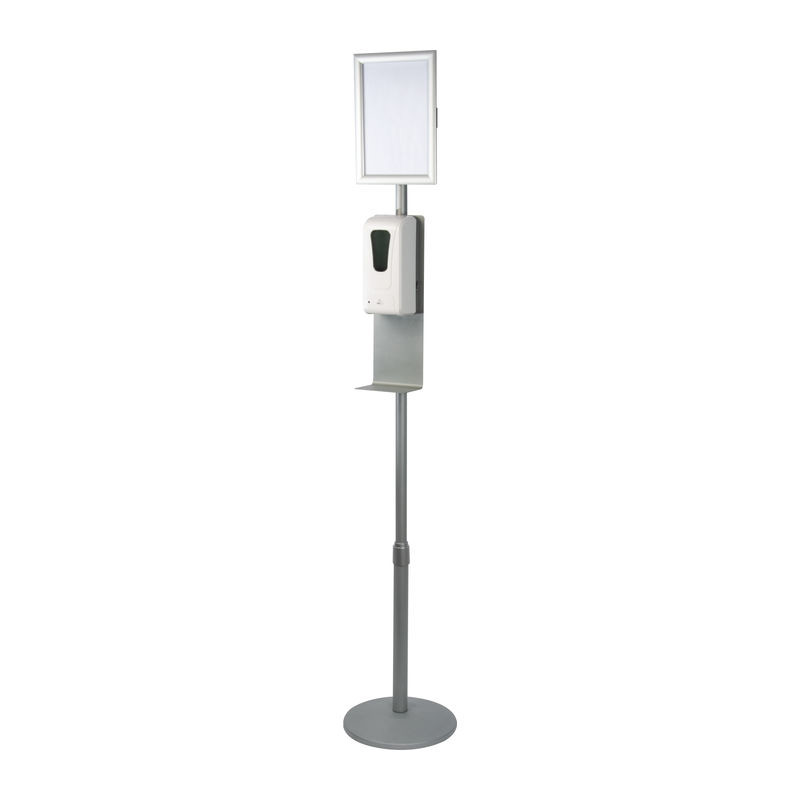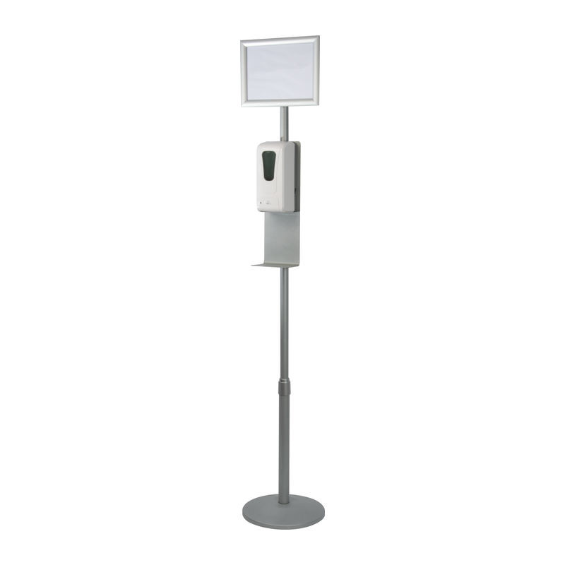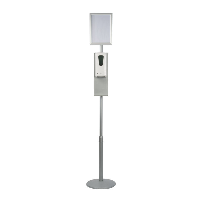 VRHUNSKA CIJENA! Dezinfekcijski stupac sa stabilnom bazom, teleskopskim stupom (125-165 cm), oglasnim prostorom veličine DIN A4 i posudom kapaciteta 1000 ml za dezinfekcijski gel ili tekućinu, baterije nisu uključene. Idealno za vladine urede, restorane, trgovine ili tvrtke. Svoj logotip možete sami ispisati na DIN A4 i prilagoditi ga u bilo kojem trenutku.