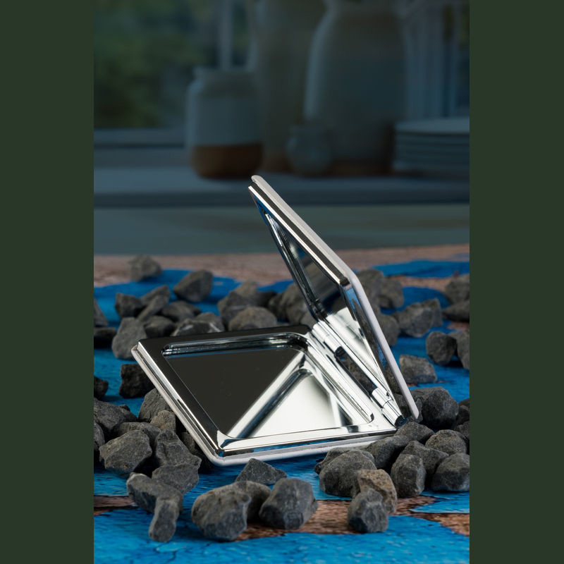 Nerazbojivo dvostruko ogledalo - kako? Izrađeno od poliranog metala. Pogled je svijetao - s jedne strane normalan, s druge uvećan. Bijeli poklopac izvana čini ga savršenim. Vaš logotip bit će laserski graviran.