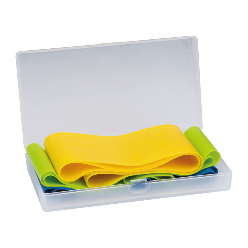 Mini teretana za van! S ovim elastičnim fitness trakama možete vježbati bilo kada i bilo gdje! Dolazi u plastičnoj kutiji na koju ćemo otisnuti vaš logotip.
