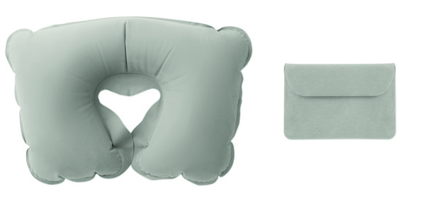 Napuhljivi putni jastuk u baršunastoj vrećici. Popularan za korištenje u automobilu, vlaku ili avionu.