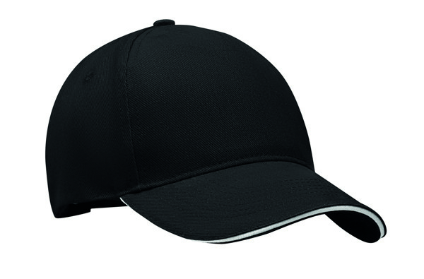 Bejzbolska kapa s 5 panela od teškog brušenog pamučnog kepera 260 g/m2 sa srebrnom čeličnom kopčom. 4 vezene rupice za vezice u odgovarajućoj boji. Veličina 7 1/4.