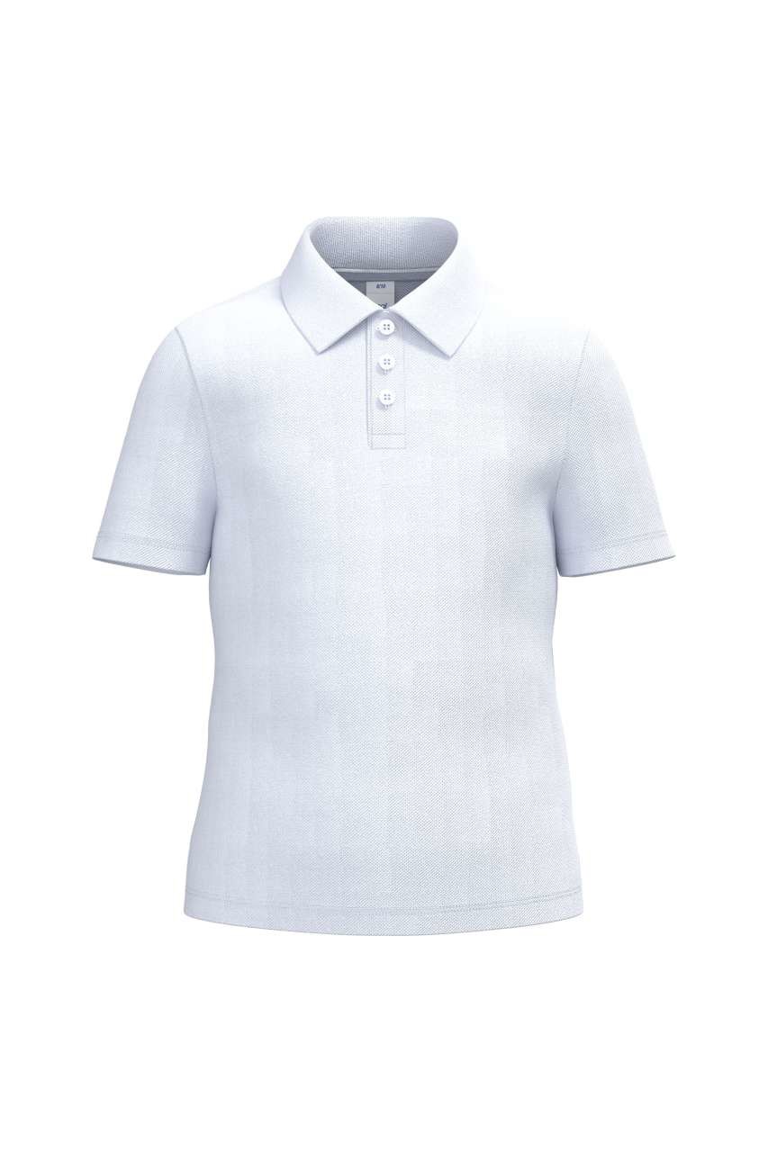 Piqué knit Straight fit 1x1 ribbed collar finish Placket with 3 tone-on-tone buttons Tone-on-tone inner neck tape Side slits Double-needle finish at sleeve and bottom hems Tear-away brand label