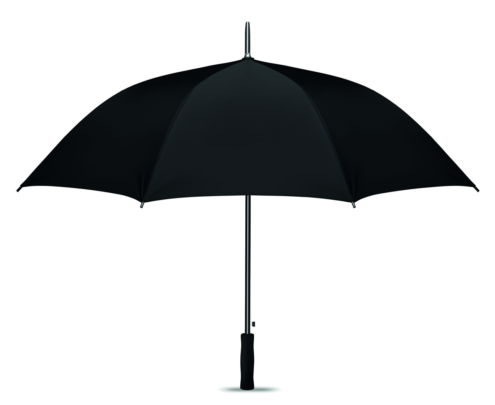 Kišobran s automatskim otvaranjem od 27 inča, izrađen od 190T poliestera i s unutarnjim srebrnim premazom. S crnom metalnom drškom i rebrima. Crni plastični vrhovi. Ravna crna EVA ručka. Ručno zatvaranje.