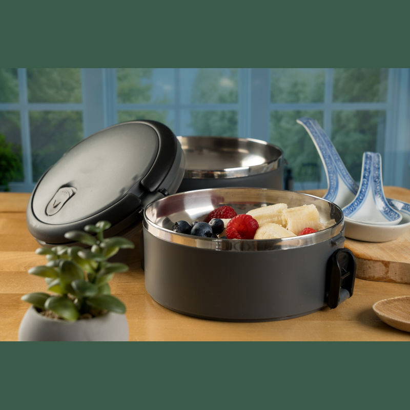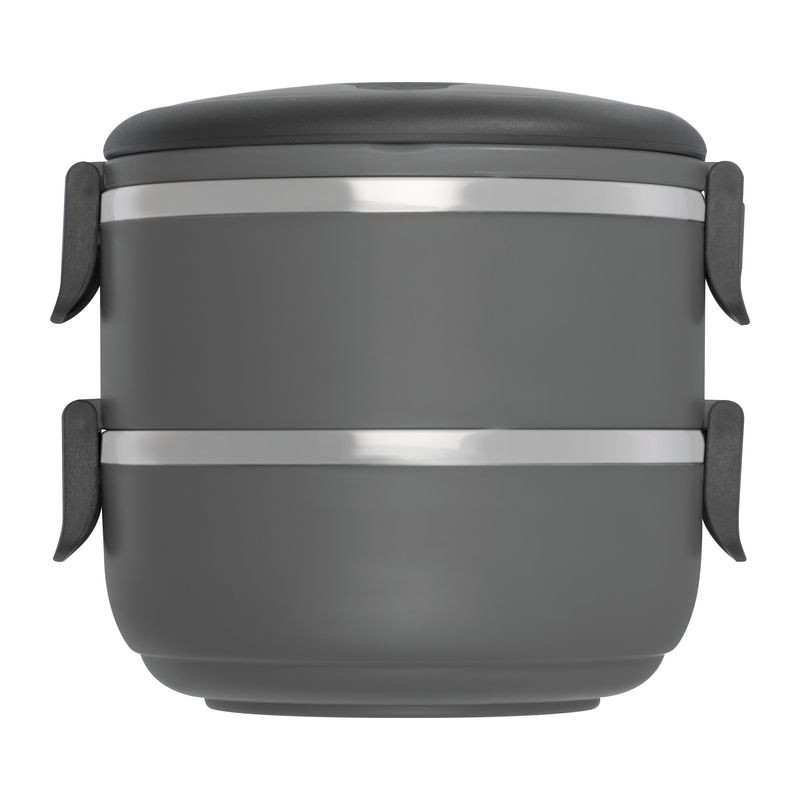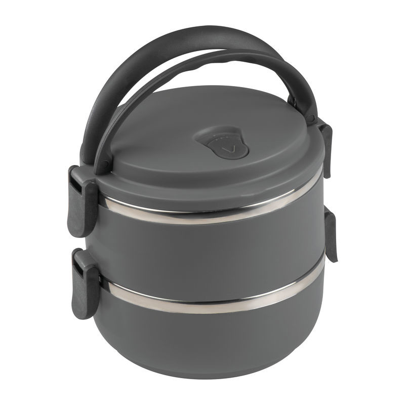 Idealno za ručak, kutija od nehrđajućeg čelika s dva odjeljka i plastičnom ručkom za nošenje. Tiskamo vaš logotip na poklopac.