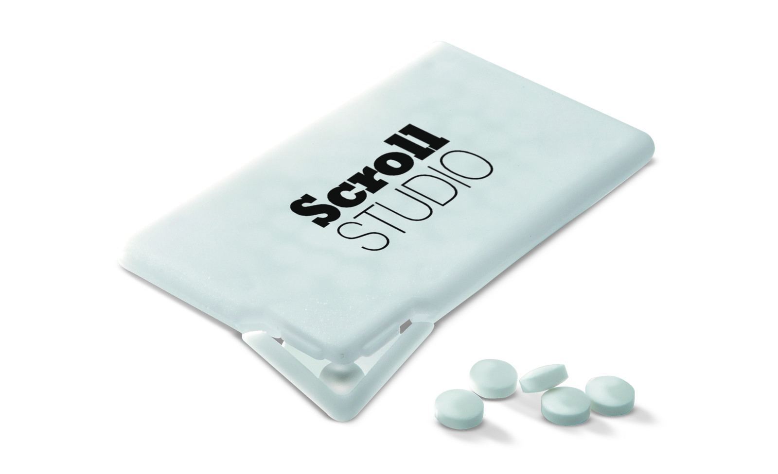 Dozator za pepermint bombone u obliku kreditne kartice. Uključeno 8 grama bombona.