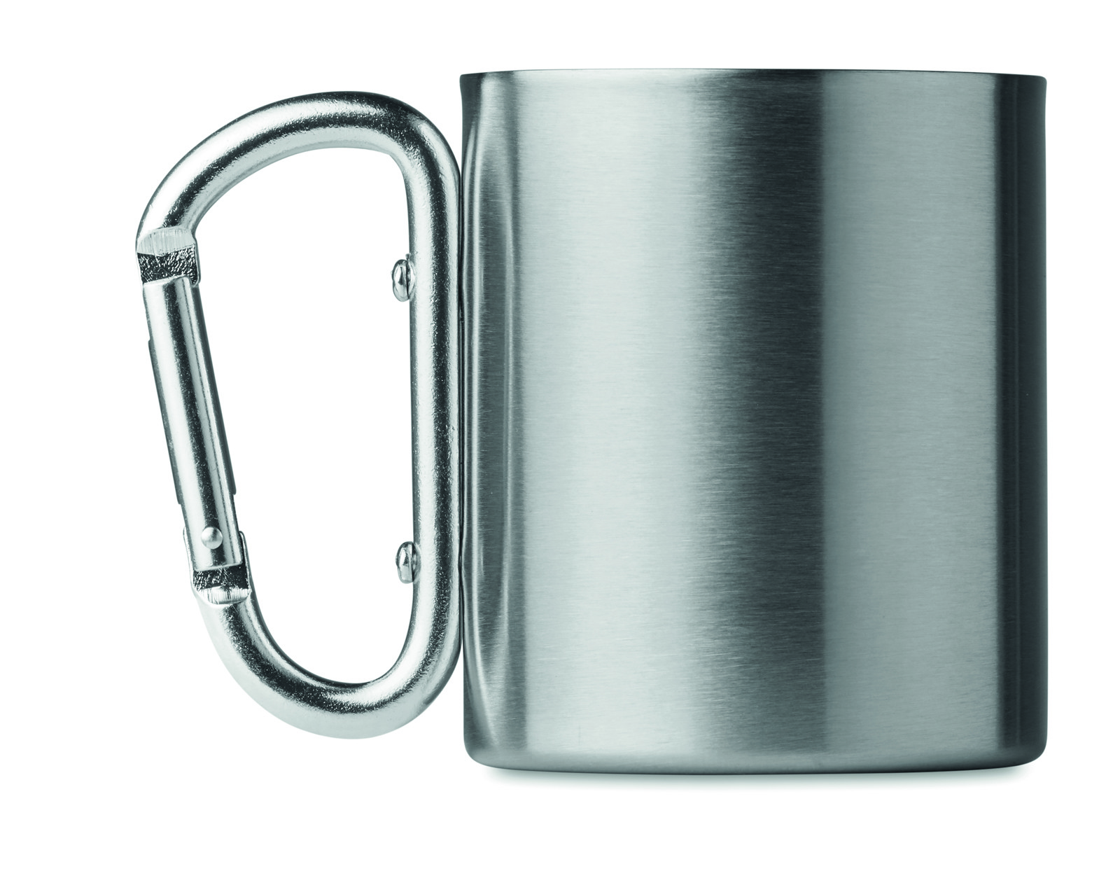 Dvoslojna šalica od nehrđajućeg čelika s karabiner ručkom. Kapacitet: 220 ml.