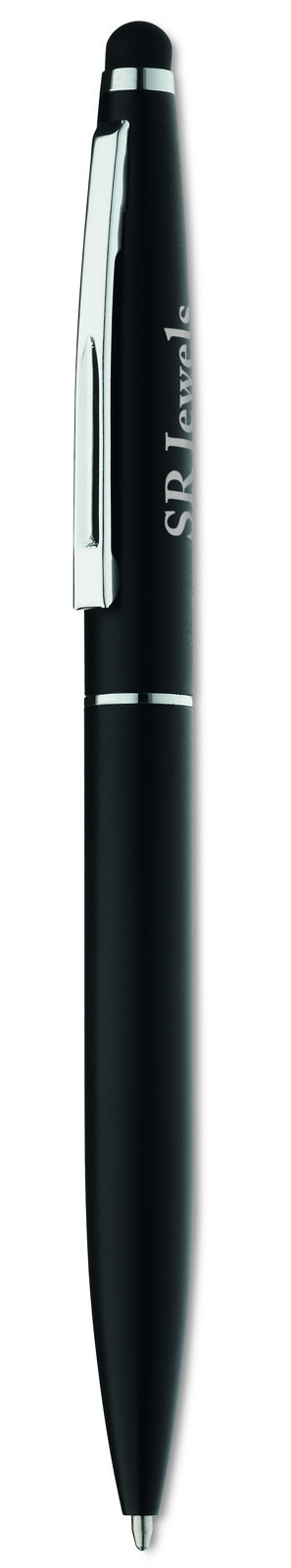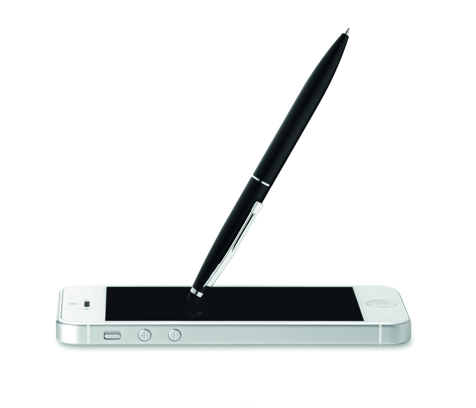Kemijska olovka od aluminija s okretnim mehanizmom, stylusom i mat završnom obradom. Plava tinta.
