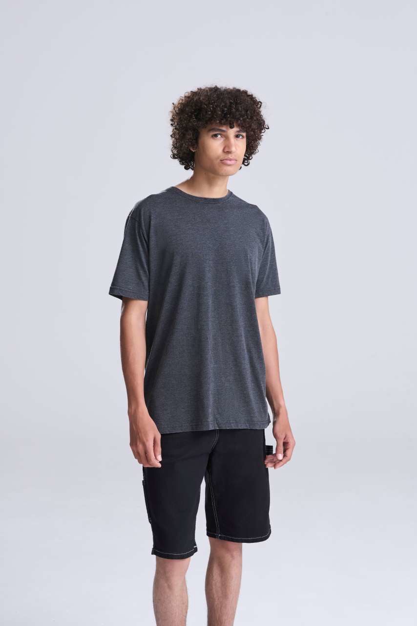 55 % prstenasto ispreden pamuk, 45 % poliester Standardni kroj Bočni šavovi Efekt isprane boje Svaki je komad jedinstven zahvaljujući postupku ispiranja Samo etiketa za veličinu, za jednostavnu promjenu marke Izvrsna površina za tisak ili uvez Ojačani ovratnik Rebrasti okrugli izrez Dvostruko šivani detalji Perite odjeću tamnih boja zasebno